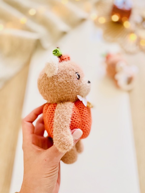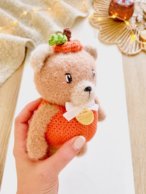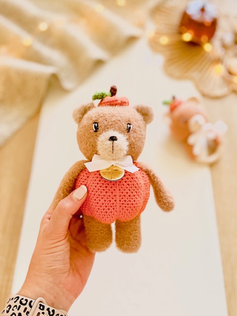 Quand l’automne s’installe et que les feuilles rougissent 🍁 Miel l’Ourson d’Automne 🐻 se transforme en petite citrouille espiègle ! Avec son costume et ses couleurs chaleureuses, il devient le compagnon idéal des câlins et des aventures de bébé.