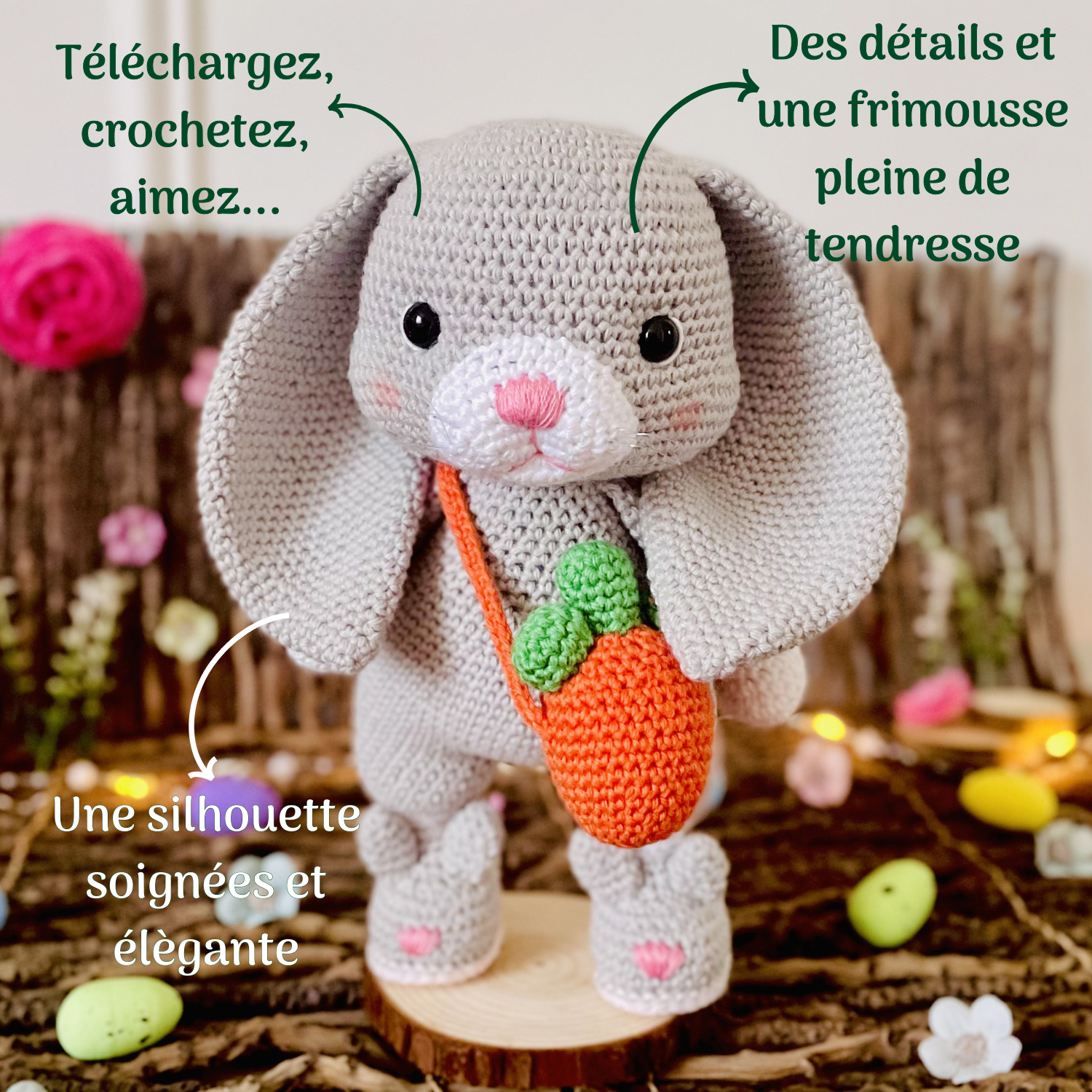 Laissez-vous emporter dans l’univers poétique de Tif Créatif avec un nouvel ami au crochet imaginé pour apporter douceur, magie et câlins dans votre quotidien. Un fidèle compagnon tendre à offrir, chérir ou exposer dans votre univers créatif.
